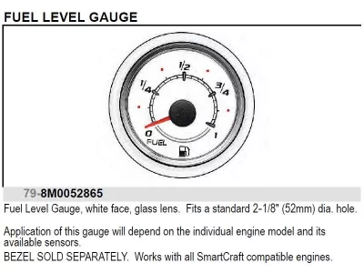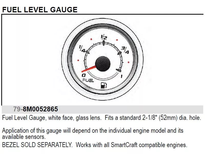 SmartCraft Tankanzeige 79-8M0052865, weißes Zifferblatt. Einbaudurchmesser 52 mm.