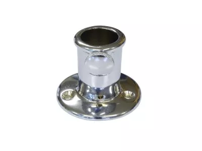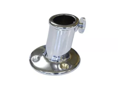 Flaggenstockhalter aus verchromtem Messing mit Feststellschraube und Ablaufloch.