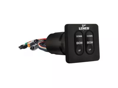 Einbau-Schalter-Set für Trimmklappen mit einem Stellzylinder. Kontrollbox mit automatischer Rückstellfunktion beim Ausschalten integriert. 76 cm Kabelbaum auf der Rückseite sowie 91 cm Anschlusskabel zur Stromversorgung (12 / 24 V).