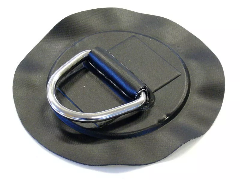D-Ring 65x50 mm Edelstahl (Material-Ø = 6 mm) auf gewebeverstärktem PVC - Ø ca. 15 cm.